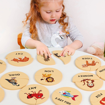 Rompecabezas de madera de 2 piezas para bebés, juguete educativo para edades tempranas, forma redonda, para principiantes, animales de aprendizaje, números
