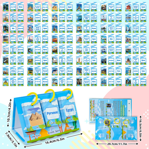 キッズパーティーボードゲーム学習国フラッシュカードゲーム有名な風景フリップチャート