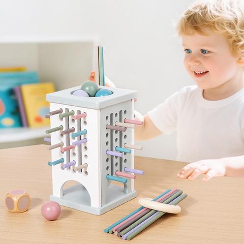 モンテッソーリ クラシック タワー ゲーム スティック タワー ダイス ボール 木製 ボードゲーム 幼児 男の子 女の子向け